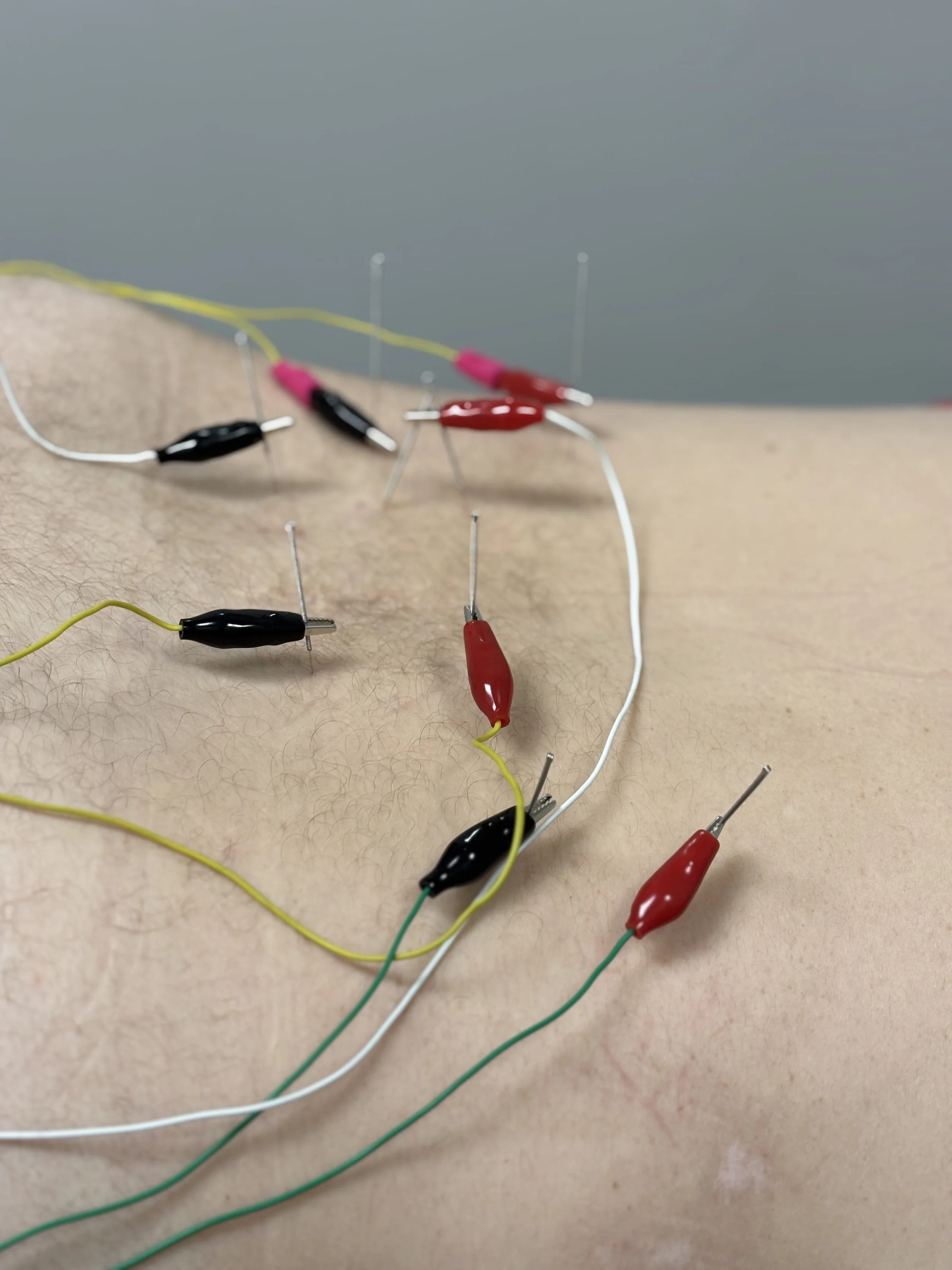 Using solid fine point needles to stimulate blood flow and the nervous system reducing pain and improving healing.